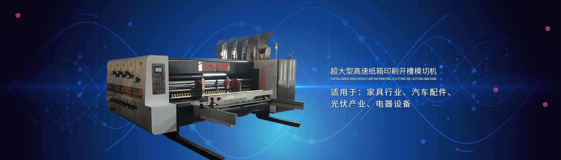 主要產(chǎn)品: 紙箱印刷開槽機, 高速印刷開槽模切機,自動插格機,釘箱機,粘箱機,仁成包裝機械,紙箱機械